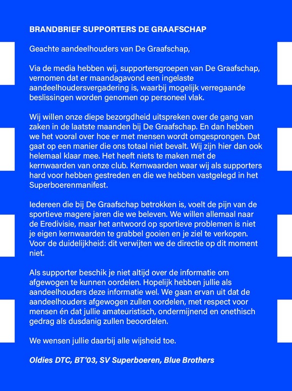 Brandbrief van supporters aan aandeelhouders BVO De Graafschap!