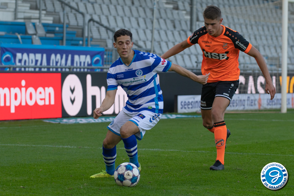 Met nog 10 minuten tot aan de rust zien we een tweetal kansen voor De Graafschap. Mohamed Hamdaoui ziet zijn beide inzetten. Een vrije trap en een uithaal, niet tot doelpunt worden omgezet.