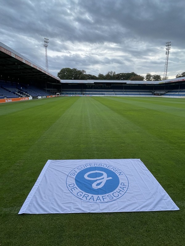 De eerste vlag heeft het logo van SV Superboeren, en de tweede vlag heeft de ouderwetse G met het oprichtingsjaar 1954.