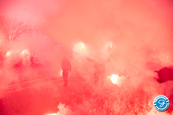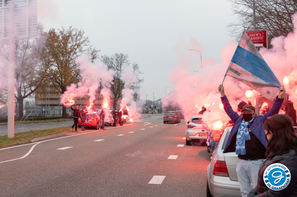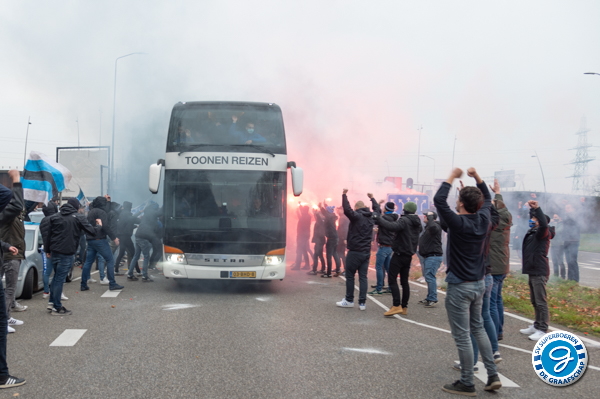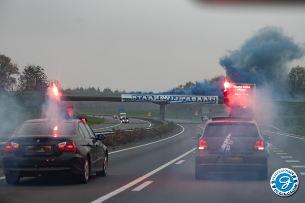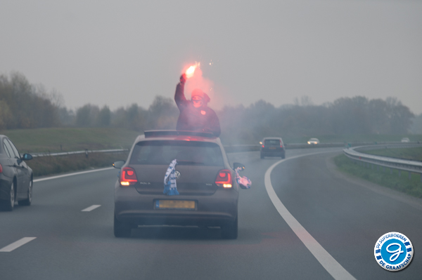 Voorafgaand aan de wedstrijd FC Eindhoven - De Graafschap konden de spelers van De Graafschap, tijdens de reis naar Eindhoven, op meermaals rekenen op steun van haar supporters.