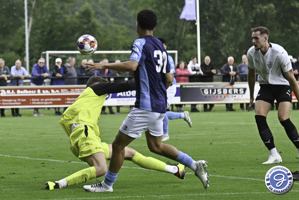 Pas in de 10e minuut zien we enig gevaar voor het Graafschappelijke doel. Een inzet van Bocholtse aanvaller Fakhro wordt eenvoudig onschadelijk gemaakt door doelman Mees Bakker.