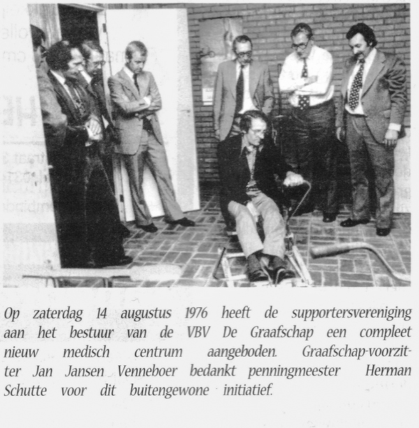 Later kwamen daar de eerste buswedstrijden bij. Om dingen te kunnen bekostigen werd de eerste merchandising opgericht. Er werd een oude directiekeet van de bouw door Herman geregeld welke dienst deed als verkooppunt en bestuurskamer. In seizoen 1976-77 werd zelfs een nieuwe medische ruimte werd geregeld voor de club.