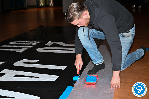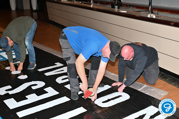 Doordat we ze dag en nacht zagen werken aan de sfeeracties ontstond het idee om ze voor het jubileum te verrassen met een "eigen doekie" tijdens het jubileum. Mooi bedacht maar totaal uit onze eigen comfortzone. Gelukkig wilde de jongens van Blue Brothers ons helpen want eerlijk gezegd hadden we geen idee waar we moesten beginnen.